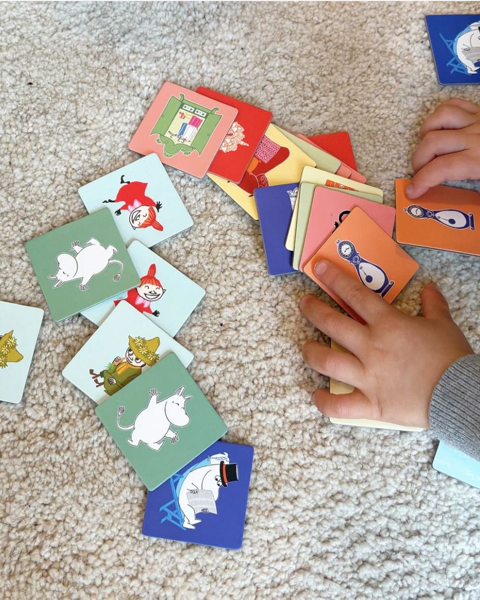 Hra obsahuje 36 dílků – 18 odpovídajících dvojic – s krásnými ilustracemi z univerza Muminů.