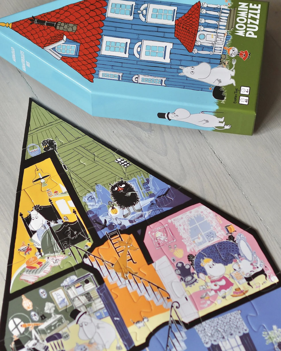 Sestavte všechny dílky této skládačky a každá místnost Mumínkova domku ožije – uvidíte, čím se Mumínci zrovna baví.