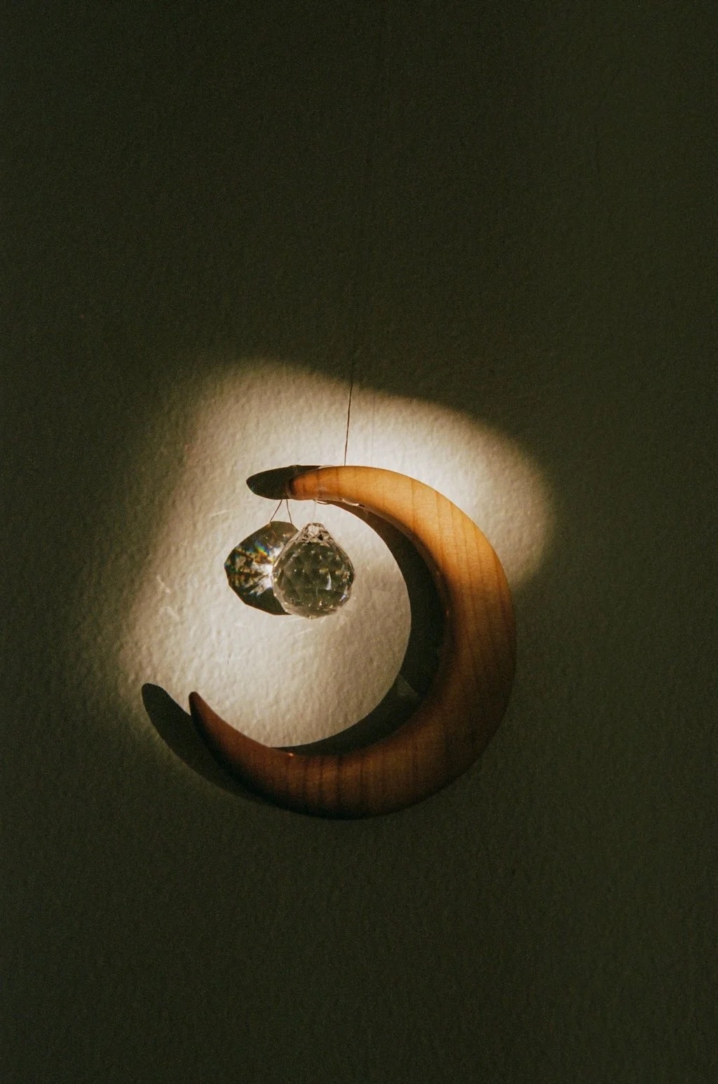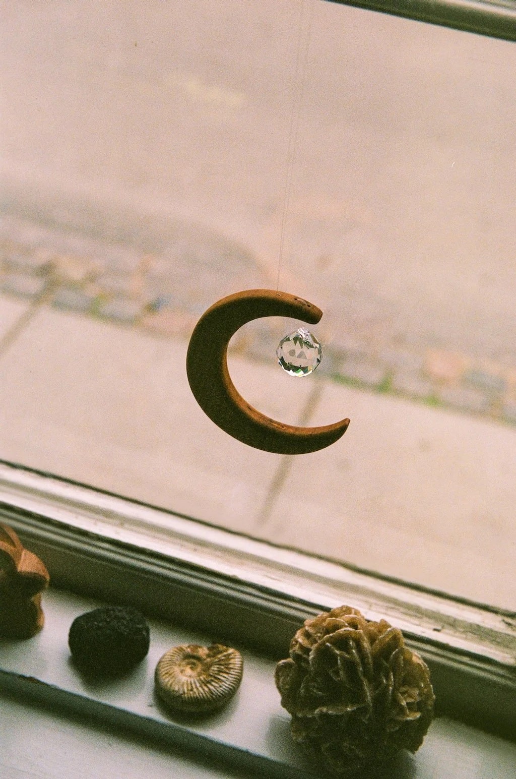 Broušené křišťálové kameny zachytávají a odrážejí světlo, takže se měsíční dekorace na okně třpytí.
